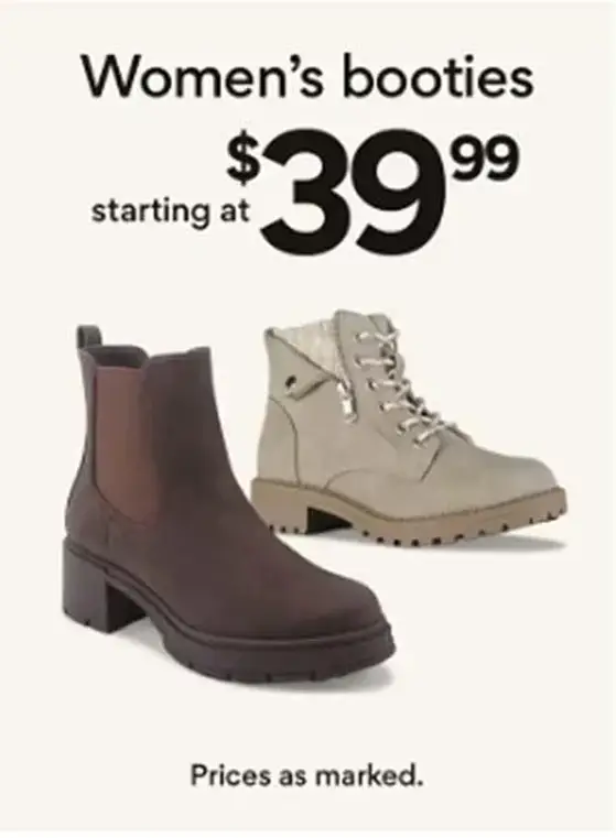 Stop by and get women's booties starting at $39.99 in store for a limited time.